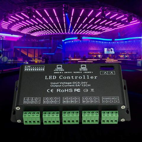 12 kanal DMX dekoder, RGB LED ışık şerit denetleyicisi dmx512 dekoder Dimmer sürücü DC5V-24V LED modül lamba